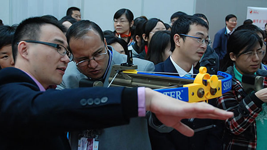 外賓也興致勃勃地參加了弓弩射擊游戲